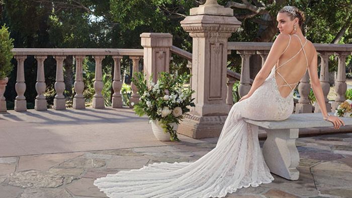 Today's gown of the week, Style 2322 Adri knows how to balance perfectly between sexy and sophisticated with its plunging low back and gorgeously intricate lace pattern work.