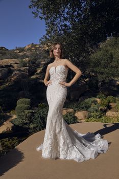 Gowns / Ever After Style 2520 Hattie Prev Next Gowns / Ever After Style 2520 Hattie Glide down the aisle with grace in Style 2520 Hattie by Casablanca. This strapless flattering fit and flare gown features a plunging neckline with Chantilly Lace, Floral Lace with Sequins & Corset Back and a 72” train. For an unforgettable accompaniment, pair with matching cathedral veil 2520V. Also available in our Curvy Sample shown in Ivory. Fabric: Stretch Chiffon, Chantilly Lace, Floral Lace with Sequins & Corset Back Available In: Light Nude/Nude/Ivory, Ivory/Nude/Ivory, Nude/Ivory, White/White Shown In: Light Nude/Nude/Ivory Find a Store Share