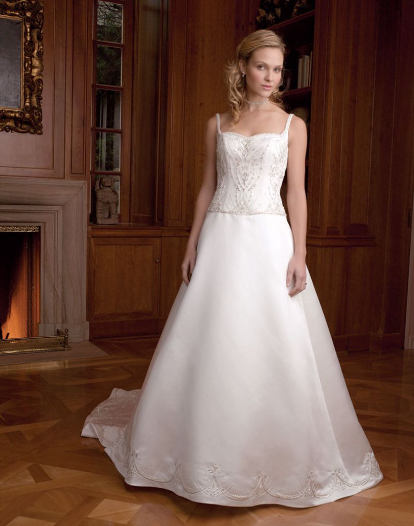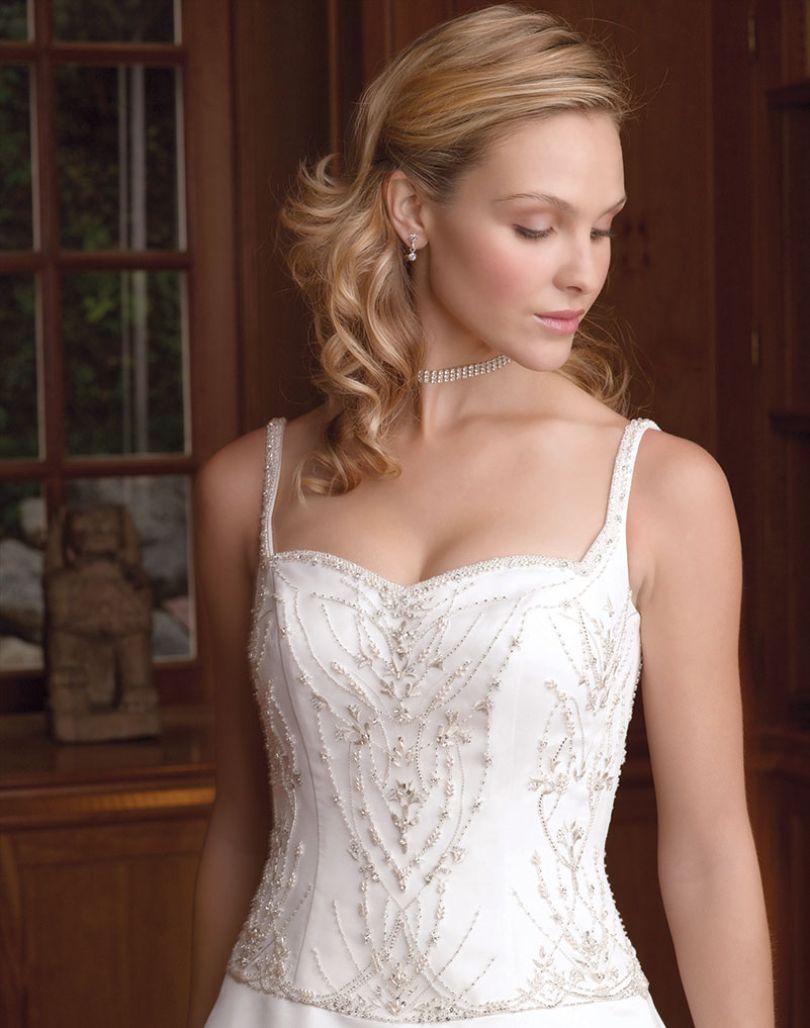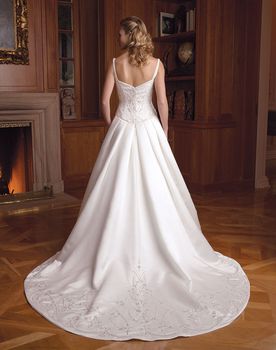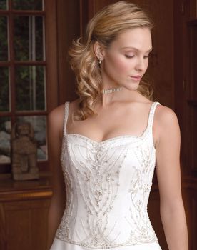 Gowns / Emerging Elegance Style 1793 Prev Next Gowns / Emerging Elegance Style 1793 Dazzling gown with a modicfied sweetheart neckline and beaded straps. The bodice is heavily embroidered with striking beadwork, which is repeated at the hemline in scalloped shape design. Rounded waistline, multiple pleats at the back skirt and chapel length train complete the look. Fabric: Silky Satin and Organza overlay bodice Available In: White, Ivory, Champagne Shown In: White Find a Store Share