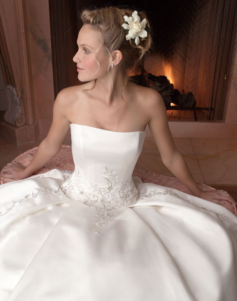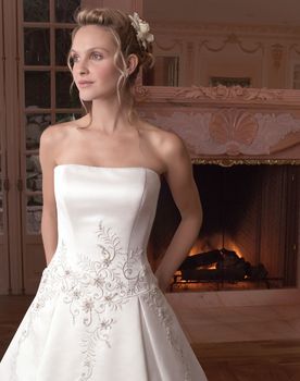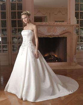 Gowns / Emerging Elegance Style 1797 Prev Next Gowns / Emerging Elegance Style 1797 This stunning gown features beautifully done embroidery and beadwork with leaf design and three-dimensional flowers. The design adorns the waistline and continues up and down on the bodice and top part of the skirt. Two box pleats at the front and three box pleats in the back give fullness to the skirt. Hand beaded buttons decorate skirt and cathedral train. Fabric: Silky Satin Available In: White/Silver, Ivory/Silver, White/White, Diamond/Diamond, Diamond White/Silver, Champagne/Silver, Ivory/Ivory Shown In: Ivory/Silver Find a Store Share