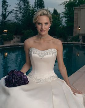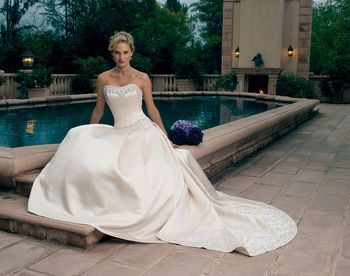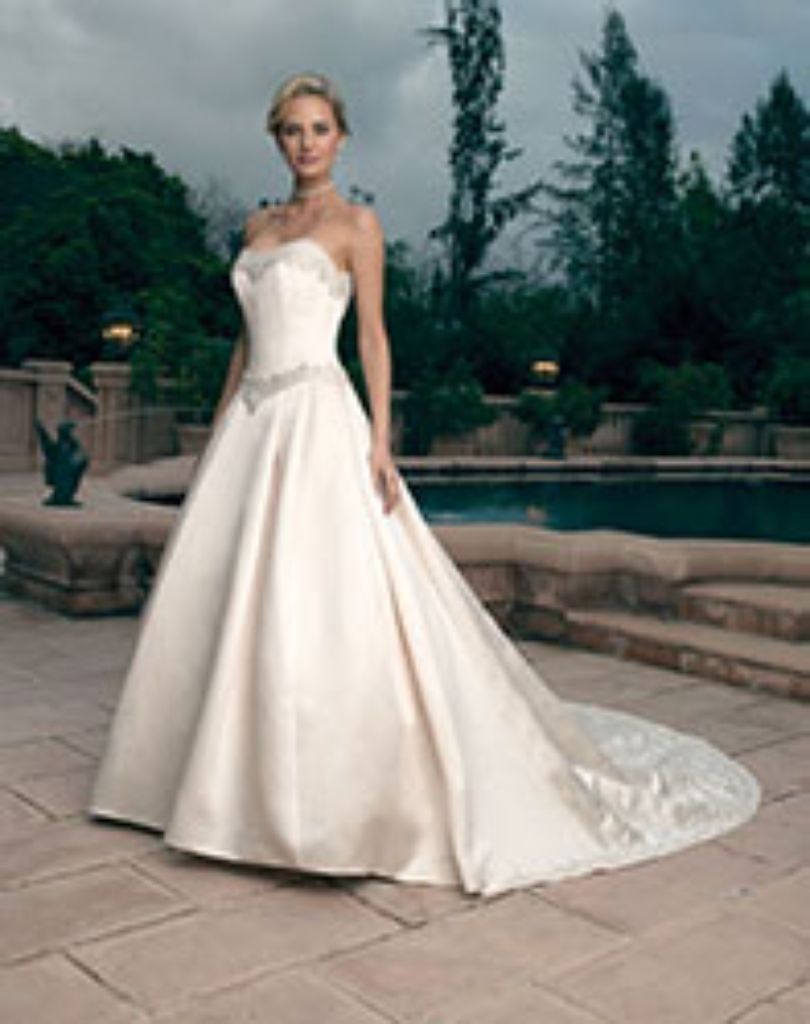 Gowns / Emerging Elegance Style 1802 Prev Next Gowns / Emerging Elegance Style 1802 Refined and elegant, this gown has a strapless sweetheart neckline, which is decorated with elaborate beadwork, which complements that used at the waistline. Multi-pleats at the front, sides and back give fullness to the skirt. Elaborate vines and flowers are hand-embroidered and beaded to make the semi-cathedral train and dress unforgettable. Fabric: Silky Satin Available In: Champagne, Ivory, White, Diamond White Shown In: Champagne Find a Store Share