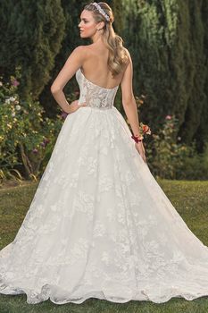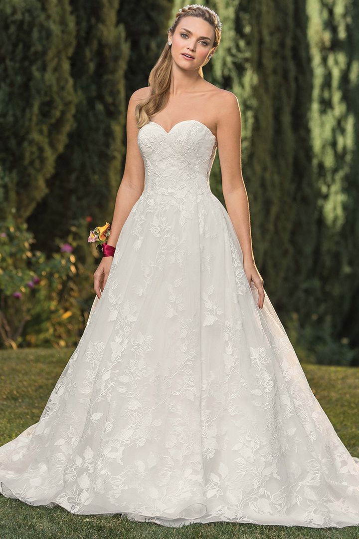 Gowns / Golden Hour Style 2349 Madeline Prev Next Gowns / Golden Hour Style 2349 Madeline Textured, large scale organic lace featuring a distinct pattern of floral foliage sits atop a layer of horsehair trim, for a beautiful ballgown skirts that cascades into the perfect shape. The strapless, sweetheart neckline bodice features a sheer back allowing the unique lace to truly pop. Fabric: Floral embroidered lace, organza Available In: Ivory/Ivory, White/White, Champagne/Ivory Shown In: Ivory/Ivory Find a Store Share