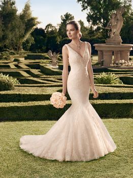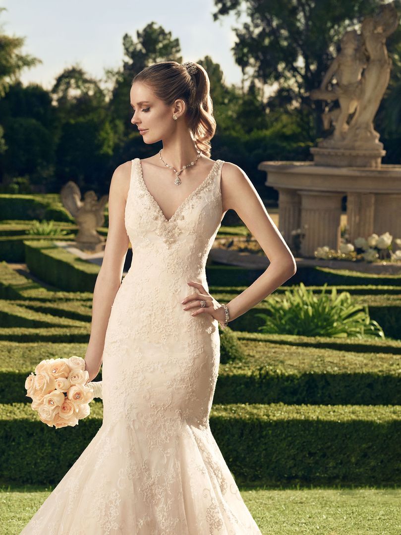 Gowns / Verdant Visions Style 2165 Prev Next Gowns / Verdant Visions Style 2165 Lace gown with tank straps feature a beaded geometric pattern along the “V” front and back necklines. Beaded and embroidered lace appliqués on tulle over Printed Shimmer Tulle with Perfecting Satin lining. Godets on the front and back skirt create the volume of the mermaid silhouette, and a baby marrow hem delicately finishes the hemline. Crystal buttons are along the zipper. Fabric: Beaded and embroidered lace appliqués on tulle over Printed Shimmer Tulle, Perfecting Satin lining Available In: Champagne/Ivory/Silver, White/White/Silver, Ivory/Ivory/Silver Shown In: Champagne/Ivory/Silver Find a Store Share