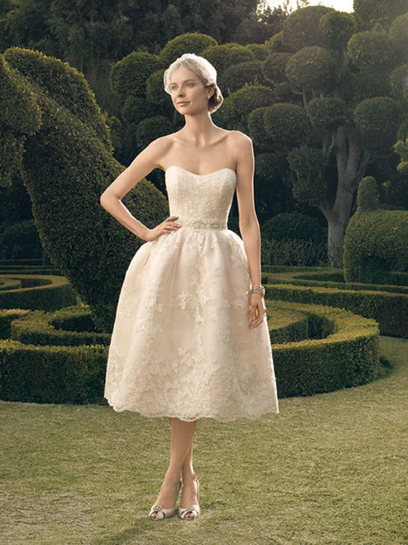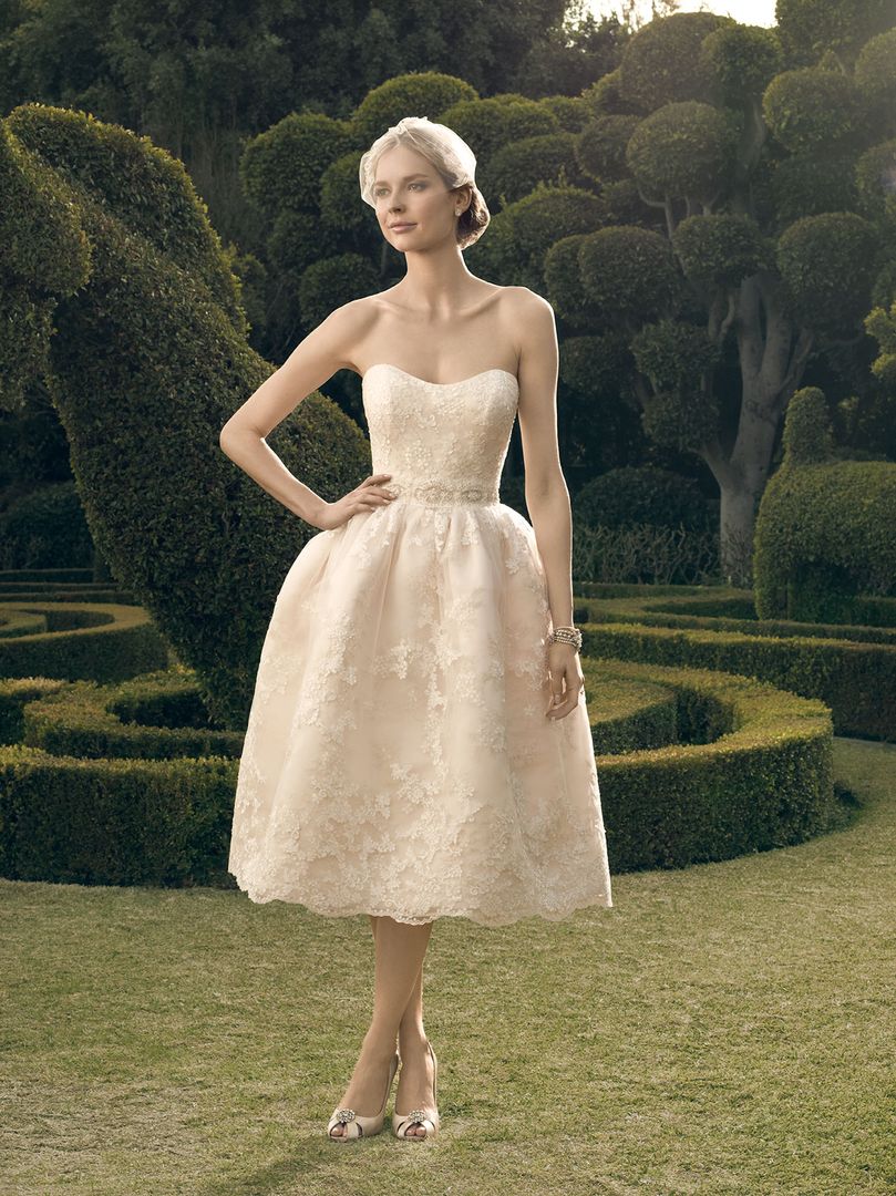 This versatile gown can be worn with the detachable short sleeve bolero jacket, or worn without for a strapless look. The bodice and skirt feature all over non-beaded embroidered appliqués over a layer of metallic embroidery on organza over Sleek Satin. The bodice has a modified sweetheart neckline and is accented with a beaded, eyelash fringe scalloped lace appliqué band that sits at the natural waist of this vintage ball gown skirt. Crystal buttons finish the bodice.