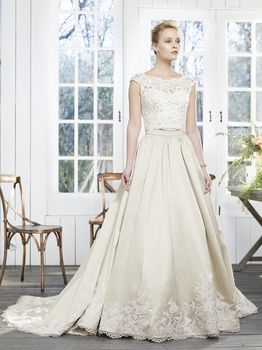 Gowns / Autumn Blooms Style 2260 Peony Prev Next Gowns / Autumn Blooms Style 2260 Peony Edgy brides with a soft side will fall head over heels for Peony. The skirt is made of sumptuous Duchess Satin material, with just enough beautiful lace detailed embroidery to make this a truly spectacular gown for a special bride. Fabric: Beaded Lace and Duchess Satin Available In: Antique Gold/Silver, Candlelight/Silver, Ivory/Silver, White/Silver Shown In: Vintage Gold/Silver Find a Store Share