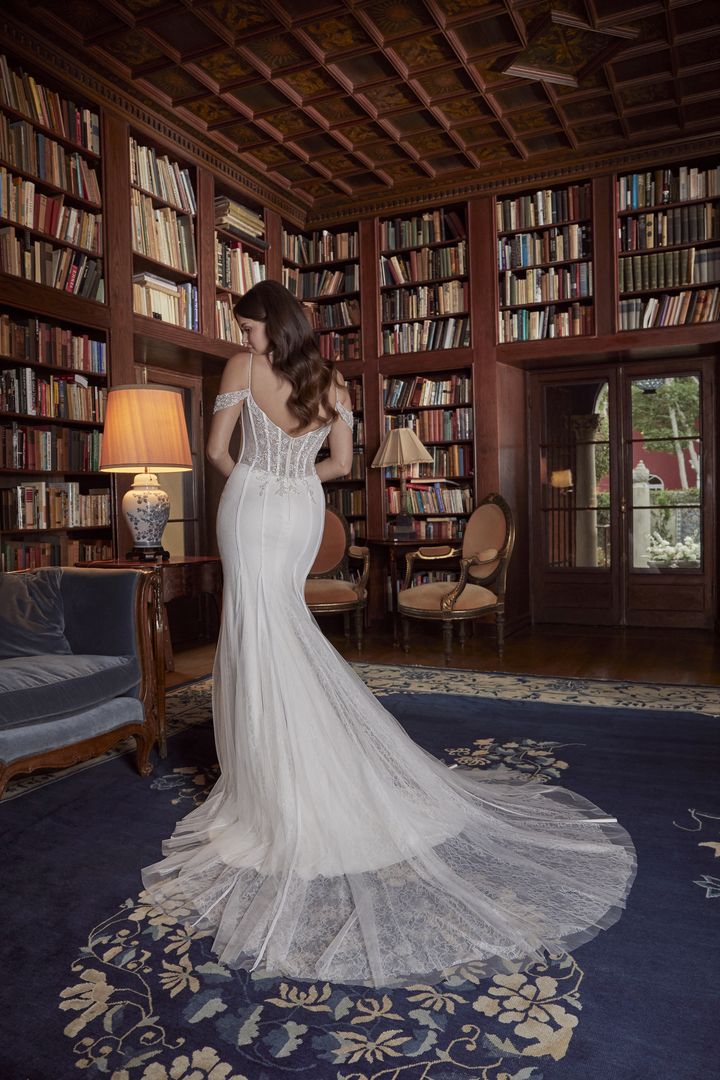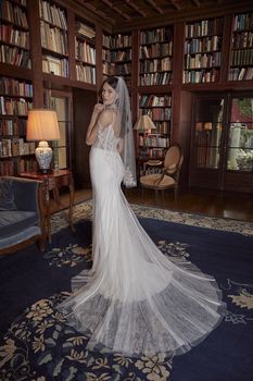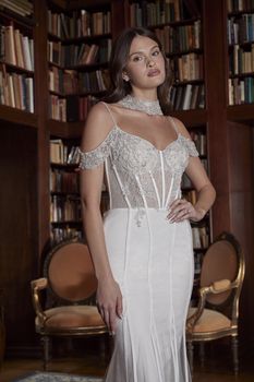 Gowns / French Countryside Style 2542 Chanel Prev Next Gowns / French Countryside Style 2542 Chanel This stretch fabric fit and flare wedding dress is a mix of the contemporary clean trend with a side of sparkle. The illusion bodice with exposed boning is embellished with hand beading and crystals. Beaded spaghetti straps hold up a sweetheart neckline, with the option to add choker necklace, sold separately (NK007). Slimming vertical piping follows the boning on the bodice down the skirt, providing a flattering lengthening touch. Fabric: Stretch Lining, Chantilly Lace & Beading Available In: Sand/Nude/Ivory/Silver, Nude/Silver, White/White/Silver, Ivory/Nude/Silver Shown In: Sand/Nude/Ivory/Silver Find a Store Share