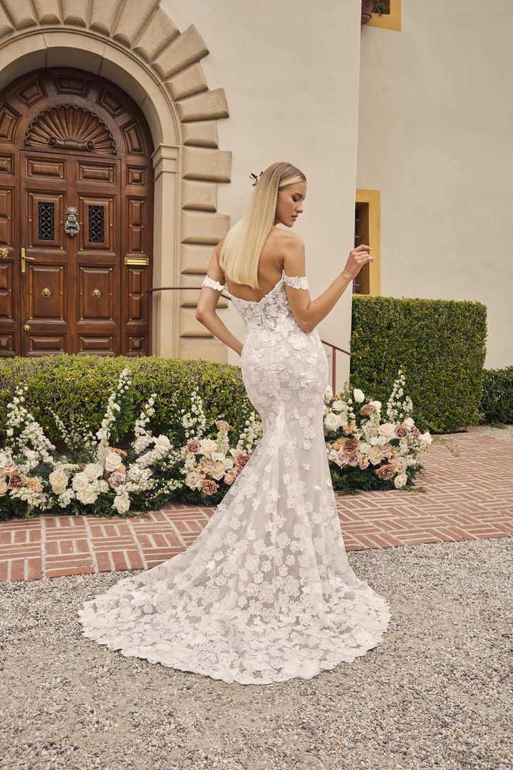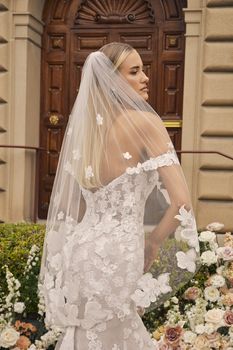 Gowns / French Countryside Style 2544 Geneve Prev Next Gowns / French Countryside Style 2544 Geneve Classic elegance is created with this fit and flare wedding dress. The alluring illusion bodice features a classic sweetheart neckline and off the shoulder straps. Adorned with sequined floral lace appliques over a lace underlay for a timeless look. A scalloped lace hem continues around to create a 62” train that extends past the comfortable stretch lining. The style is finished with an optional tulle over skirt, 2544SK (sold separately). Fabric: Stretch Lining, Tulle with Sequined Lace Available In: Nude/Ivory/Silver, Ivory/Nude/Ivory/Silver, Sand/Nude/Ivory/Silver, White/White/Silver Shown In: Nude/Ivory/Silver Find a Store Share