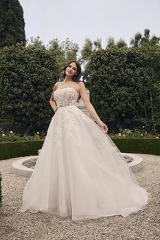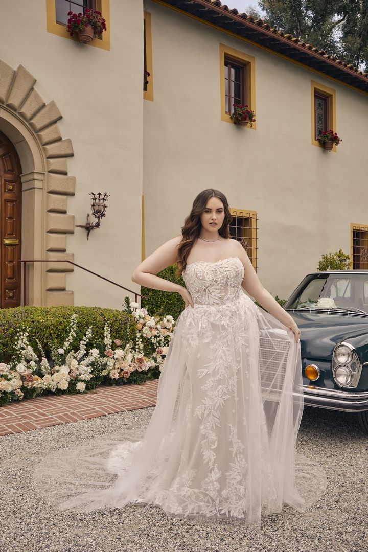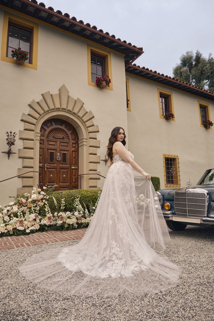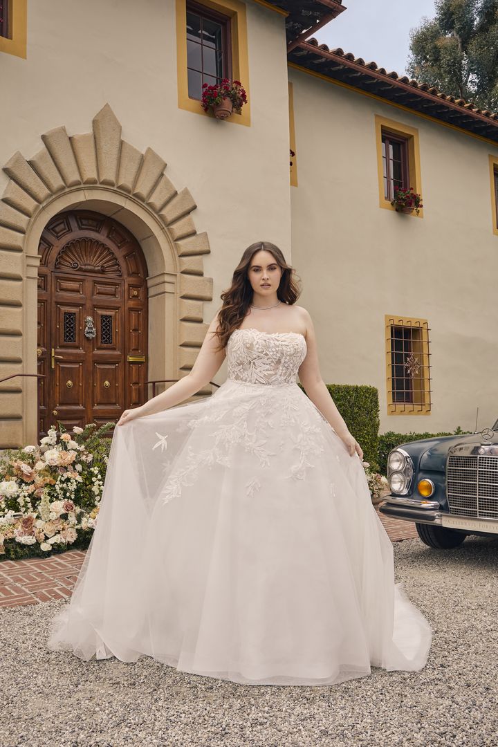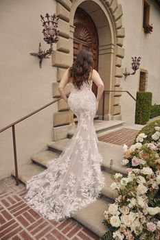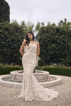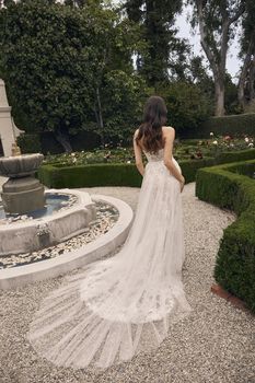 Gowns / French Countryside Style 2548 Jacqueline Prev Next Gowns / French Countryside Style 2548 Jacqueline This fit and flare wedding dress features an unlined bodice with exposed boning and a square front and back neckline. Oversized beaded and sequined floral appliques kiss the bodice and skirt. With a delicate all over shimmer dot tulle, you'll be remembered in this enchanting dress. Pair this simple silhouette with a detachable tulle skirt ( 2548SK-1) or an A-line step out skirt to get 2 looks in one ( both sold separately). Fabric: Stretch Lining, Shimmer Dot Tulle, Sequined Lace and Beading Available In: Nude/Ivory, Sand/Nude/Ivory, White/White, Ivory/Nude/Ivory Shown In: Nude/Ivory Find a Store Share