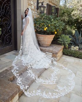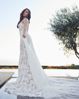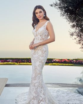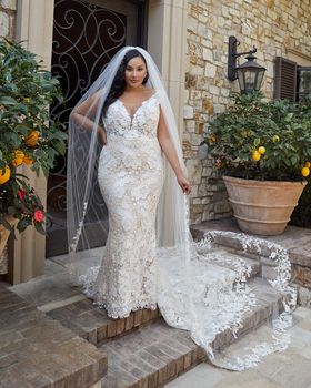 Once you put on Style 2443, you’ll never want to take it off. Bursting with detail from head to toe, this fit and flare lace wedding dress will leave an unforgettable impact on your special day. The most striking floral Guipure lace covers this design from head to toe, punctuated by a V-neckline and low V-back. Perfecting satin underneath makes for irresistibly comfortable all day wear. Need to change up your look mid-wedding? A detachable skirt made of soft tulle, sold separately, extends the train from 55 to 81 inches for a final touch of magic. Matching skirt SK006