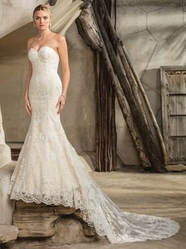 Gowns / Hidden Oasis Style 2292 Sedona Prev Next Gowns / Hidden Oasis Style 2292 Sedona At first glance, Style 2292 Sedona may seem like your average lace fit and flare gown with a sweetheart neckline. Yet closer examination reveals the most exquisite of royal length trains, where layers of scalloped lace create a rippling impact that is absolutely show stopping. Fabric: Lace on Tulle over layer of Sequined Tulle and Sateen Satin Available In: Ivory/Ivory/Ivory, White/White/White, Light Champagne/Ivory/Ivory Shown In: Light Champagne/Ivory/Ivory Find a Store Share