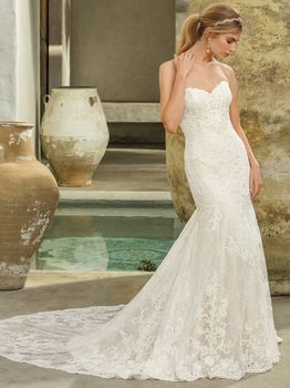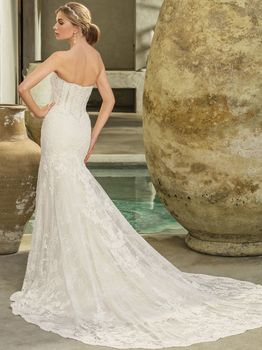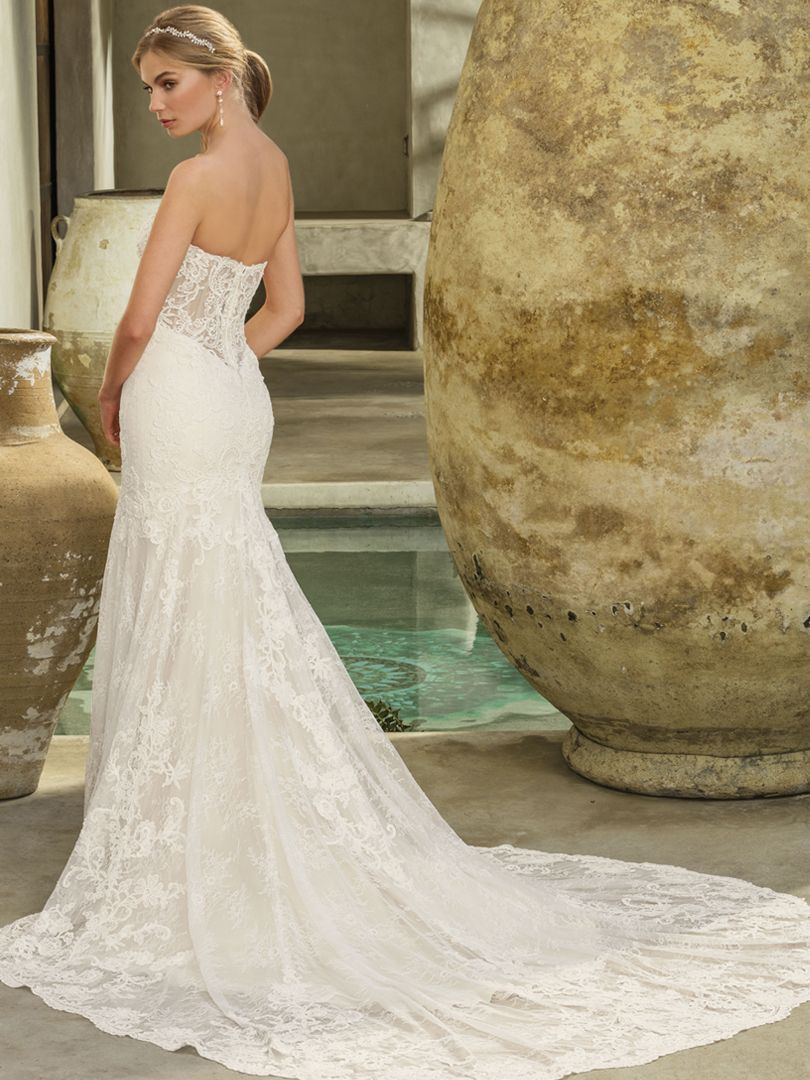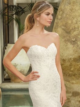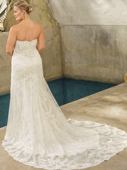 Gowns / Hidden Oasis Style 2294 Avery Prev Next Gowns / Hidden Oasis Style 2294 Avery Varying scales of lace combine in a unique way across the strapless, fit and flare frame of Style 2294 Avery. The perfecting satin underlay simply reaches a chapel length, while Chantilly lace fans out in a semi-cathedral length addition. The option of a removable panel reveals an illusion back. Fabric: Lace Appliques on Chantilly Lace and point d'esprit over silky charmeuse Available In: Light Champagne/Ivory/Silver, White/White/Silver, Ivory/Ivory/Silver Shown In: Light Champagne/Ivory/Silver Find a Store Share