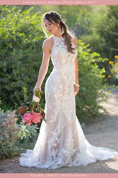 Gowns / Hillside Fairytale Style 2360 Josephine Prev Next Gowns / Hillside Fairytale Style 2360 Josephine Irresistibly dreamy, Josephine by Casablanca Bridal is gorgeous in stretch chiffon and organza. Sequined lace glimmers subtly all throughout the fit and flare shape of this romantic wedding dress, comfortably hugging the bride’s figure. A classic halter neckline crosses over to the back of this sleeveless gown for an extra touch of modern sophisticated style. Fabric: Stretch Chiffon, Organza, Sequined Lace Available In: White/White, Ivory/Ivory, Light Nude/Ivory Shown In: Light Nude/Ivory Find a Store Share