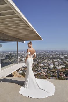 Le Blanc Style LE124 Soleil Prev Next Le Blanc Style LE124 Soleil For the bride who dreams of standout style, meet Style LE124 Soleil by LeBlanc. A portrait of modern beauty, the off-the-shoulder neckline and sweeping 72" train are crafted from luxurious (fabric name), with an exposed panel at the midriff creating a two-piece look for this fit and flare dress. The included sleeves are detachable, providing added versatility for ceremony or celebration. Available In: Ivory/Nude, White/White Shown In: Ivory/Nude Find a Store Share