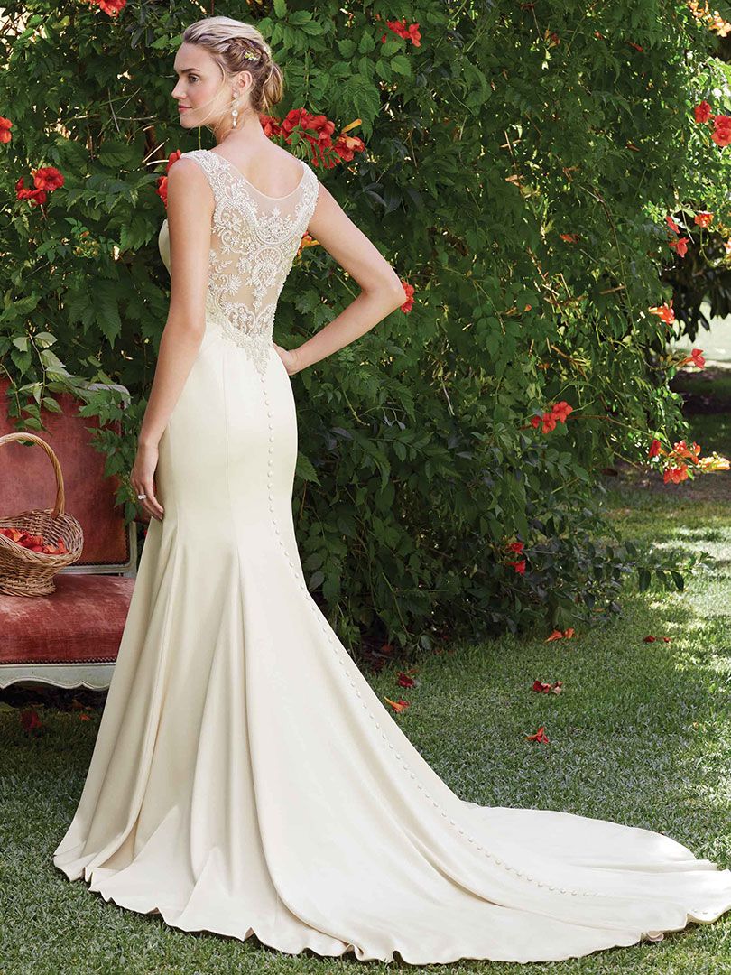 Gowns / Secret Garden Style 2284 Petunia Prev Next Gowns / Secret Garden Style 2284 Petunia The lovely and feminine Petunia is a perfecting satin gown with princess seams that accentuate the figure. The illusion bateau neckline flows into a scoop back with clusters of heavy beading, finishing with a trail of beautiful buttons. Fabric: Perfecting Satin with Charmeuse Available In: Champagne/Silver, Ivory/Silver, Blush/Silver, White/Silver Shown In: Champagne/Silver Find a Store Share