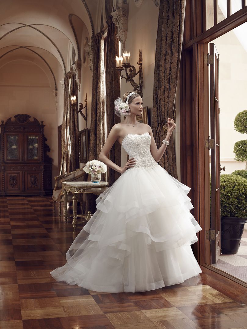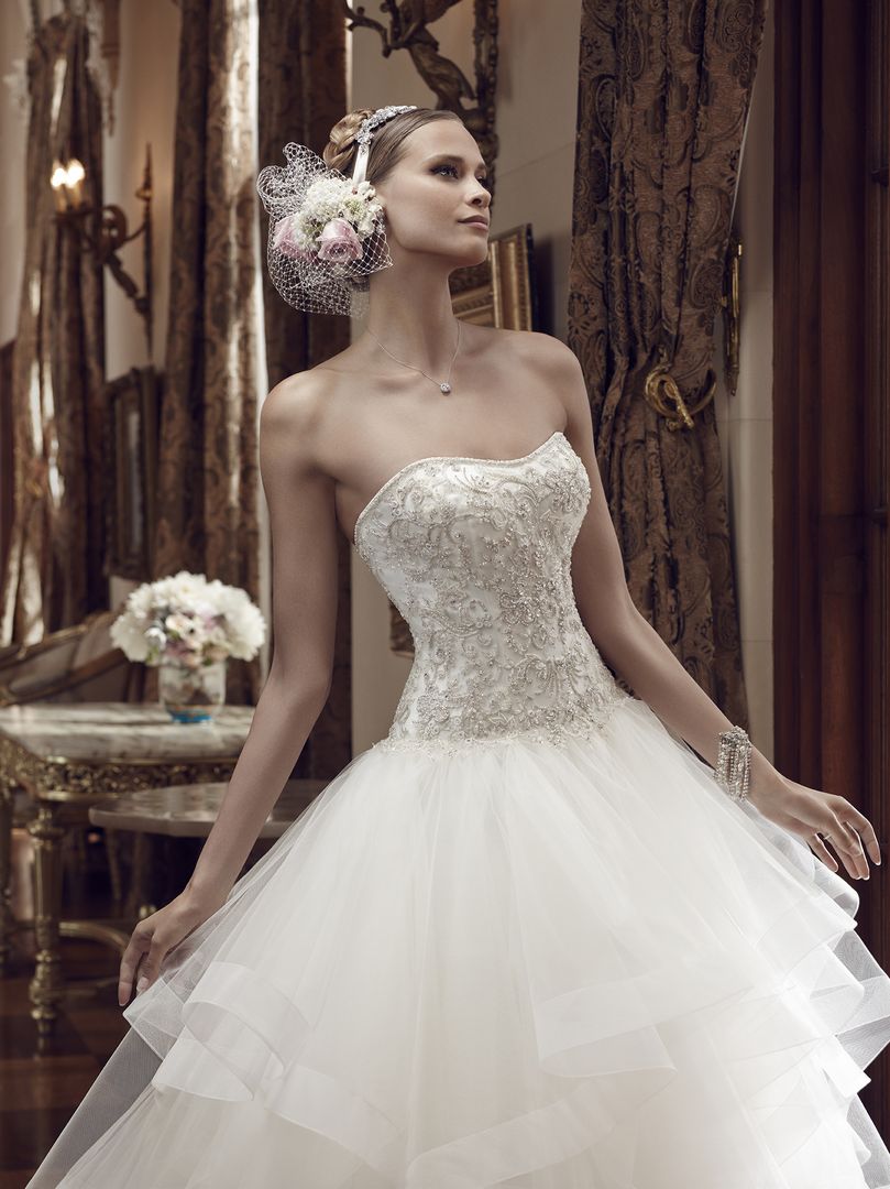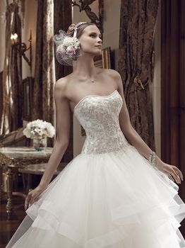Gowns / Sea Breeze Style 2199 Prev Next Gowns / Sea Breeze Style 2199 The modified sweetheart front neckline frames the heavily beaded and embroidered bodice. The entire strapless neckline is trimmed in delicate rhinestones. Each layer of the full tulle skirt is trimmed in horsehair to provide structure and texture, giving the skirt a light airy feel. Fabric: B/E Bodice, Tulle Skirt Available In: Ivory/Ivory/Silver, Champagne/Ivory/Silver, White/White/Silver Shown In: Ivory/Ivory/Silver Find a Store Share