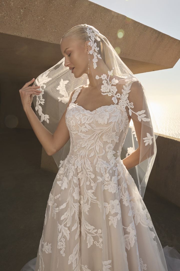 Veils Style 2618V Prev Next Veils Style 2618V Veil matching style 2618, made from Tulle, and Floral Lace with Sequins Available In: Ivory/Ivory, White/White, Champagne/Ivory, Ivory/Diamond White Shown In: Ivory/Diamond White Find a Store Share