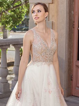 Gowns / Villa Del Sol Style 2316 Sable Prev Next Gowns / Villa Del Sol Style 2316 Sable Sable speaks modern fairytale for the bride looking to be princess-like and whimsical without sacrificing a note of seduction for her wedding day look. A heavily beaded V-neck dropped waist bodice and underarm cutouts offer modern glamour, before flowing into a full A-line skirt of soft tulle that feels positively princess-like. Fabric: B&E on Tulle Available In: White/White/Silver, Ivory/Ivory/Silver, Light Champagne/Nude/Rose Gold/Silver Shown In: Light Champagne/Nude/Rose Gold/Silver Find a Store Share