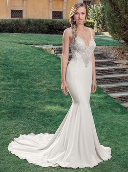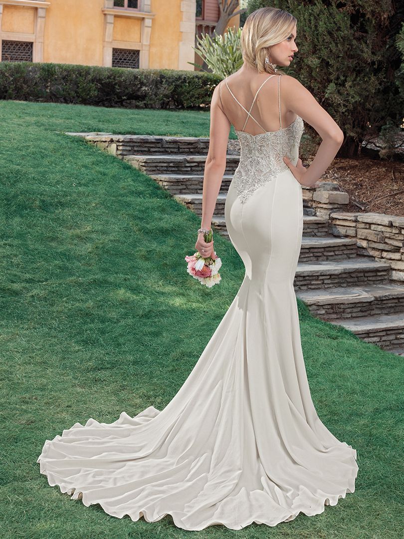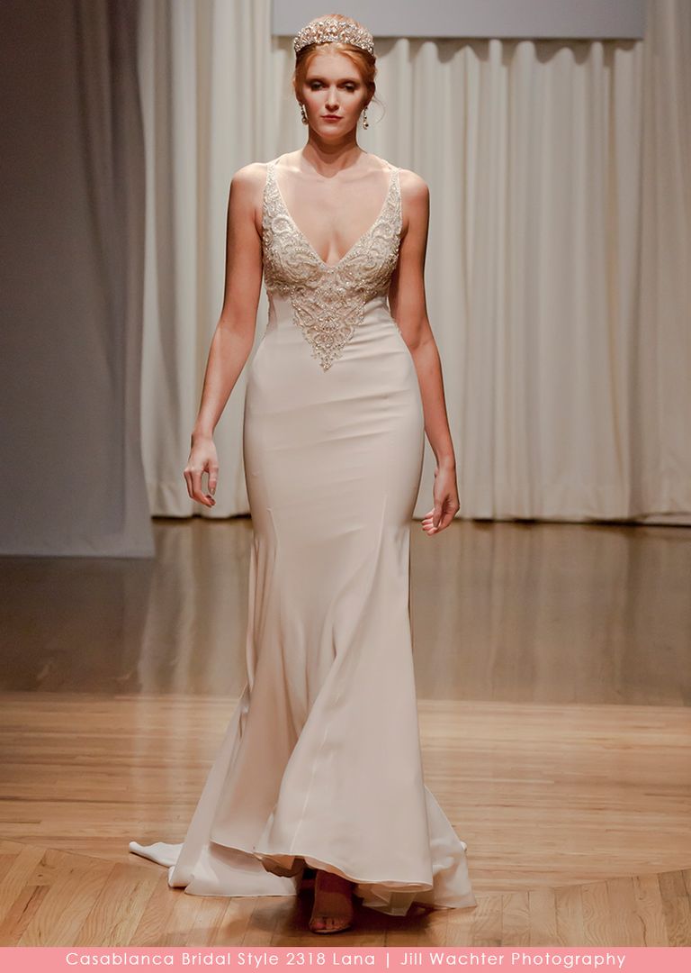 Gowns / Villa Del Sol Style 2318 Lana Prev Next Gowns / Villa Del Sol Style 2318 Lana A hint of sexy is definitely the story when it comes to this designer wedding dress. Stretch chiffon and perfecting satin exude luxury throughout the fit and flare silhouette, which is shaped by princess seaming. Delicate beaded spaghetti straps evolve out of the V-shaped neckline, crossing into an X shape above a gorgeous heavily beaded illusion back. Fabric: Stretch Chiffon, Perfecting Satin Available In: White/White/White/Silver, Silver Blush/Nude/Ivory/Silver, Ivory/Nude/Ivory/Silver, Ivory/Ivory/Ivory/Silver Shown In: Silver Blush/Nude/Ivory/Silver Find a Store Share