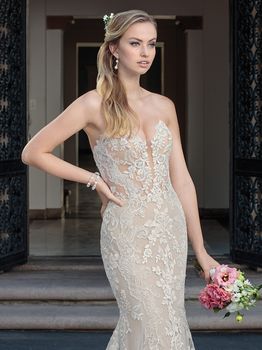 Gowns / Villa Del Sol Style 2325 Masie Prev Next Gowns / Villa Del Sol Style 2325 Masie A laid-back bohemian beauty, Style 2325 exudes a carefree and easily elegant vibe. Lace and stretch chiffon drape across the body in a fit and flare silhouette, with a plunging sweetheart neckline. A lined bodice is fully detachable for the bride who prefers to show a little more skin. Fabric: Lace, Stretch Chiffon Available In: Light Champagne/Nude/Ivory/Silver, White/White/White/Silver, Ivory/Ivory/Ivory/Silver Shown In: Light Champagne/Nude/Ivory/Silver Find a Store Share
